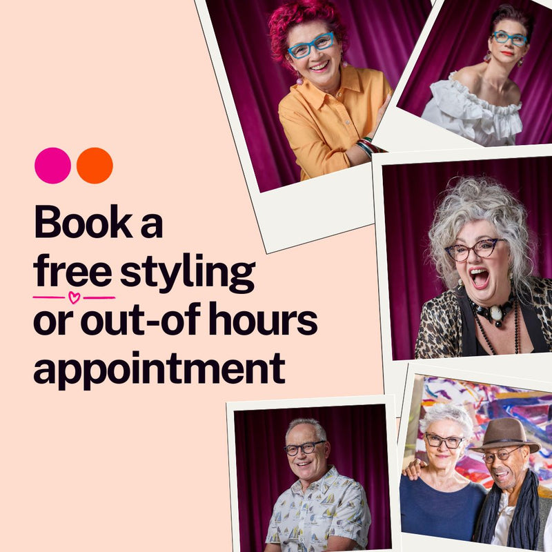 Want our undivided attention? Or an out-of-hours appointment? Justine and the fabulous Naked Specs team will guide you through a fun and personalised discovery process to find the perfect pair of glasses.